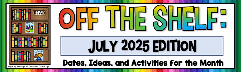 Welcome to a new “Off the Shelf” blog post highlighting important key dates, ideas, and activities for July that you can incorporate into your library lesson plans or classroom activities. My goal is to help you stay organized and inspired as you plan your month, making it simpler to bring exciting and meaningful activities to your students. Whether you’re looking for fresh ideas or resources to save you time, I hope these posts help make your planning process smoother and more enjoyable.