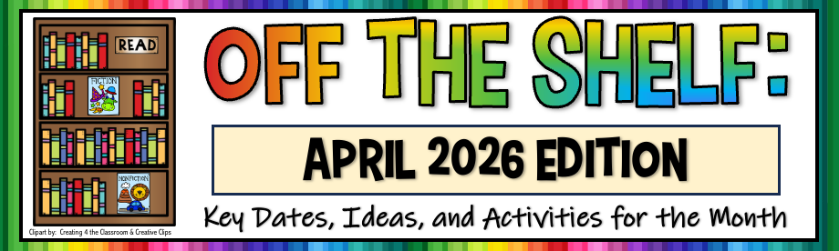 Welcome to a new “Off the Shelf” blog post highlighting important key dates, ideas, and activities for April that you can incorporate into your library lesson plans or classroom activities. My goal is to help you stay organized and inspired as you plan your month, making it simpler to bring exciting and meaningful activities to your students. Whether you’re looking for fresh ideas or resources to save you time, I hope these posts help make your planning process smoother and more enjoyable.